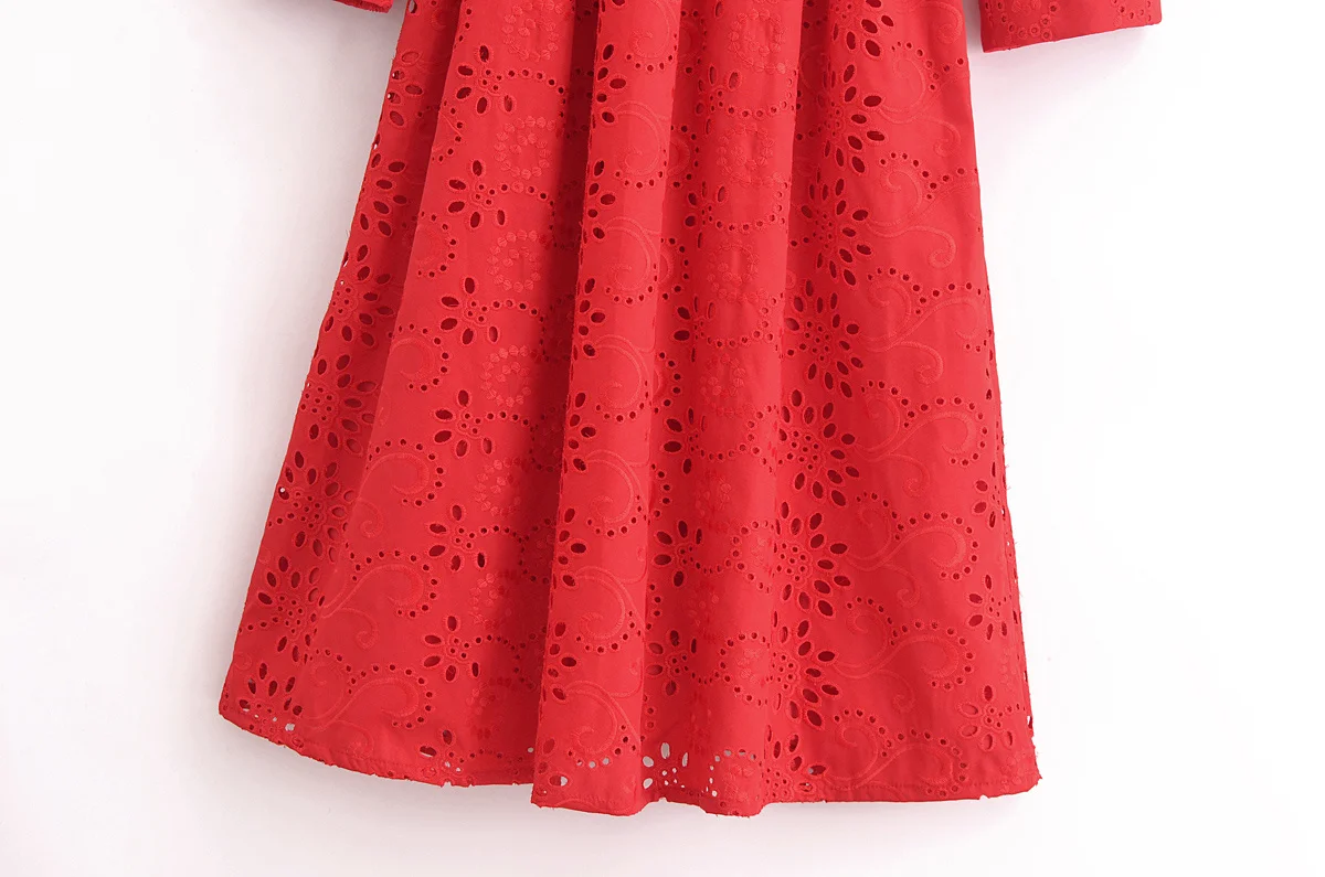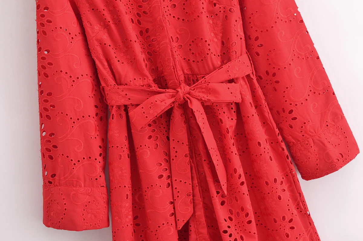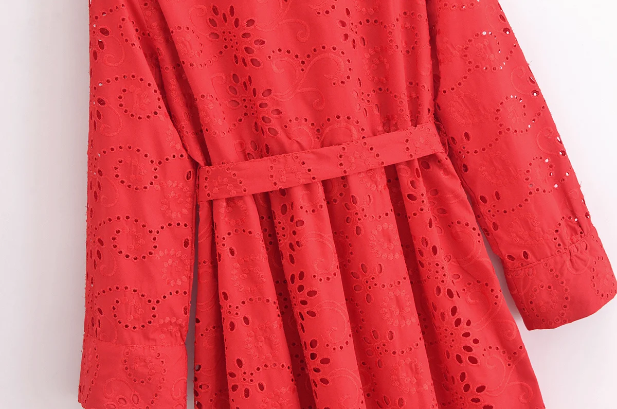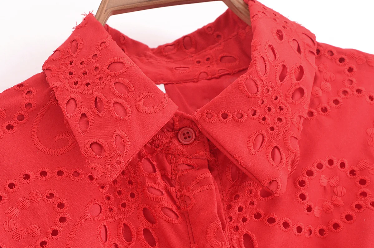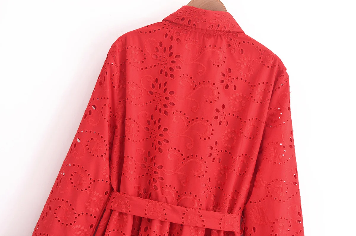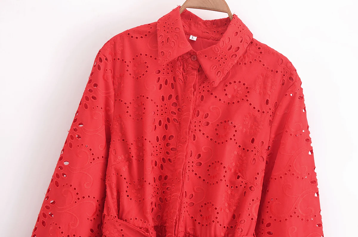 Autumn New Product Fashion Style Women’s Clothing European And American Style Casual Collar Loose Lace Embroidered Shirt Long Dr