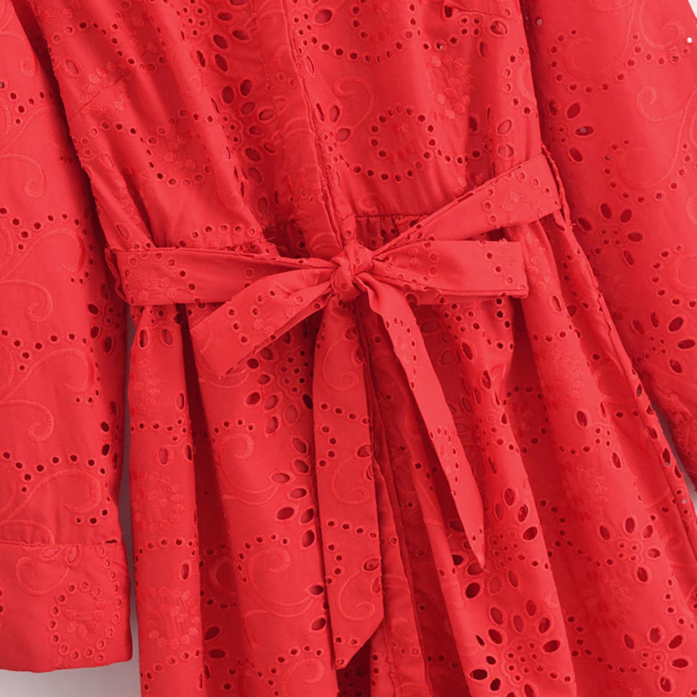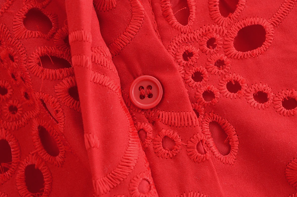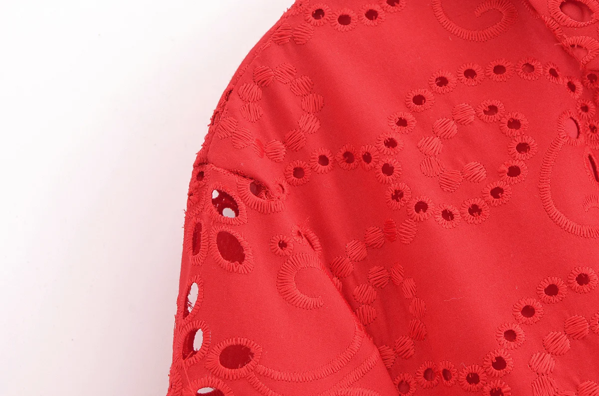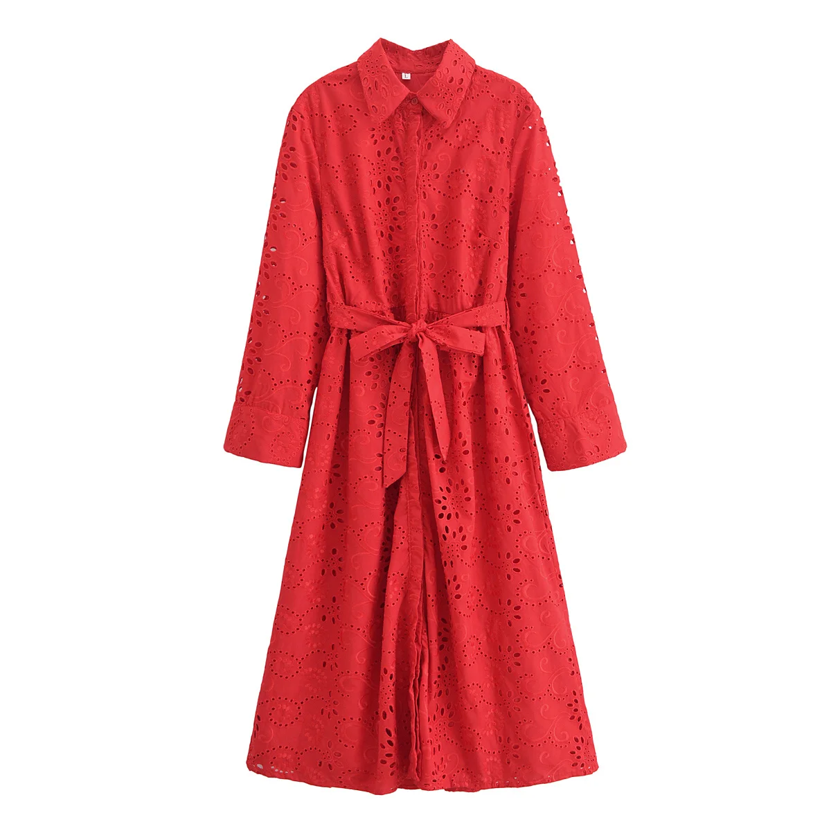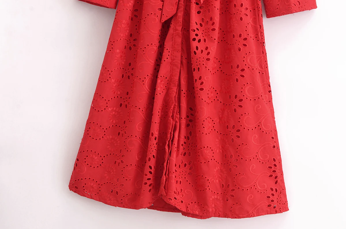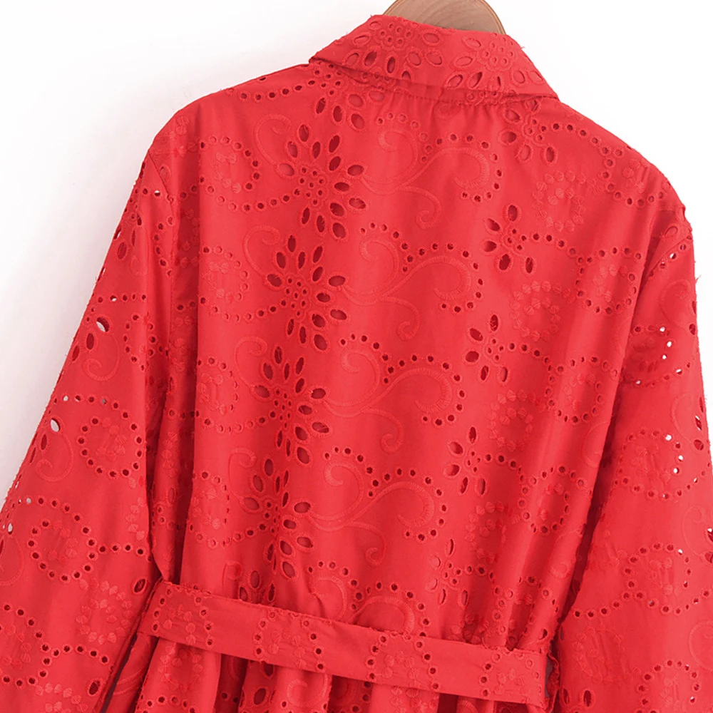 Autumn New Product Fashion Style Women’s Clothing European And American Style Casual Collar Loose Lace Embroidered Shirt Long Dr
